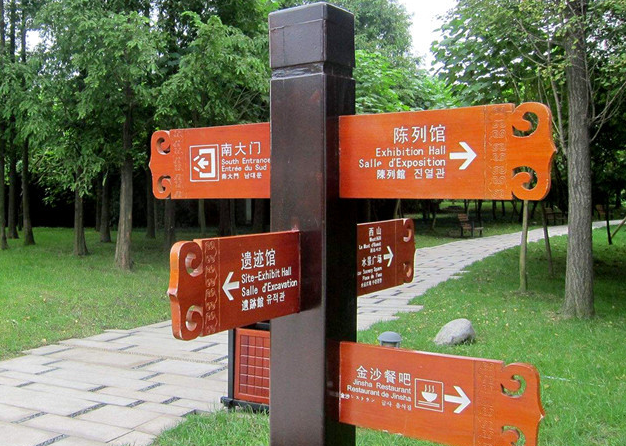 導(dǎo)視牌在不同的環(huán)境中體現(xiàn)的風(fēng)格和功能是有所不同的。如酒店賓館導(dǎo)視系統(tǒng)風(fēng)格各異,有歐式、日式等,主要體現(xiàn)樓層指示,樓層服務(wù)、酒店辦公區(qū),緊急出口等;旅游景區(qū)導(dǎo)視系統(tǒng)不僅起著公示、提示的作用,更加要強(qiáng)調(diào)它的溫馨與人性化;美食廣場(chǎng)主要展示不同地區(qū)的各式菜肴及當(dāng)日特價(jià)菜及飲食習(xí)慣等;另外還有娛樂(lè)休閑中心、樓盤(pán)小區(qū)、道路交通,辦公區(qū)域等導(dǎo)視(指示)牌,側(cè)重于起到傳遞信息,指示導(dǎo)視的作用。不論是用在哪里的導(dǎo)視牌,指示牌都在追求差異化,強(qiáng)調(diào)個(gè)性化,都有其文化體系,主題與文化是其最高境界,是靈魂所在。因此,導(dǎo)視牌的材質(zhì)、工藝、尺寸會(huì)直接影響到整體規(guī)劃的風(fēng)格、文化和品質(zhì)。